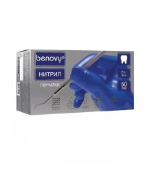 Перчатки BENOVY нитриловые, ГОЛУБЫЕ, текстурированные на пальцах, 3,0гр, L (50пар) М+
