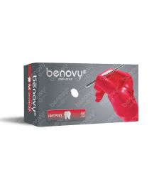 Перчатки BENOVY нитриловые, КРАСНЫЕ, текстурированные на пальцах, 4,0гр, M (50пар) М+