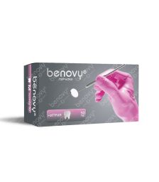 Перчатки BENOVY нитриловые, РОЗОВЫЕ, текстурированные на пальцах 3,8 гр, M (50пар) М+