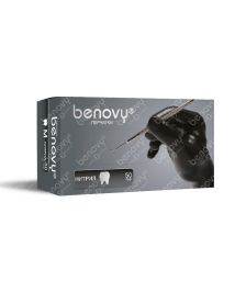 Перчатки BENOVY нитриловые, ЧЕРНЫЕ, текстур. на пальцах, 3,5 гр M (50пар) М+