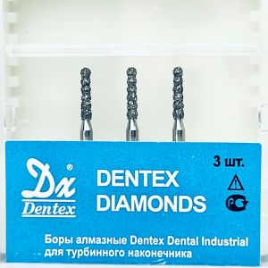 Алмазные боры Dentex Dental Industrial, изготовленные по запатентованной американской технологии, максимально отвечают требованиям бюджетных организаций и частнопрактикующих стоматологов, а их широкий ассортимент, высокая режущая способность, идеальная центровка и качество алмазной крошки DeBeers не оставила равнодушными стоматологов во всем мире, включая США, Европу и Японию.