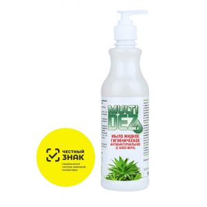 Жидкое мыло с антибактериальным эффектом, представляет собой вязкую однородную жидкость, от голубого до зеленого цвета с запахом применяемой отдушки (Алоэ Вера). Бережно очищает и дезинфицирует кожу.