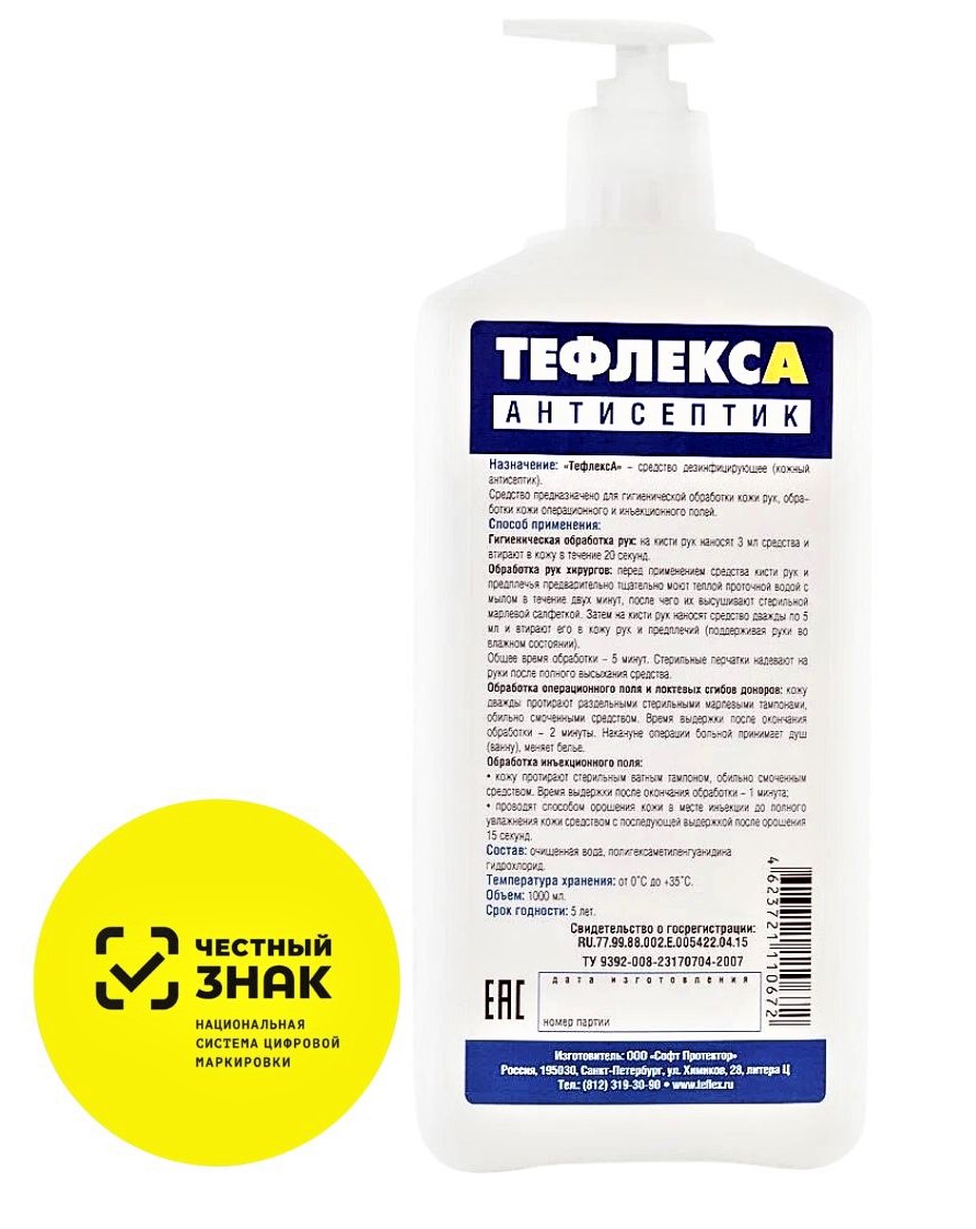 ТефлексА - кожный антисептик для обработки рук (с дозатором), 1л КВАДРАТНАЯ бутылка Софт-Протектор М+