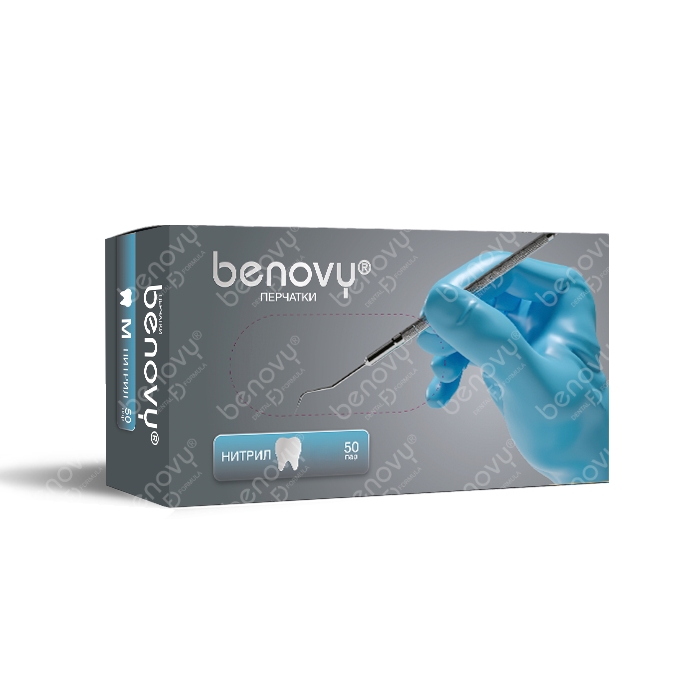 Перчатки BENOVY нитриловые, ГОЛУБЫЕ, текстур. на пальцах, ПЛОТНЫЕ, 4,5гр, XS (50пар) М+