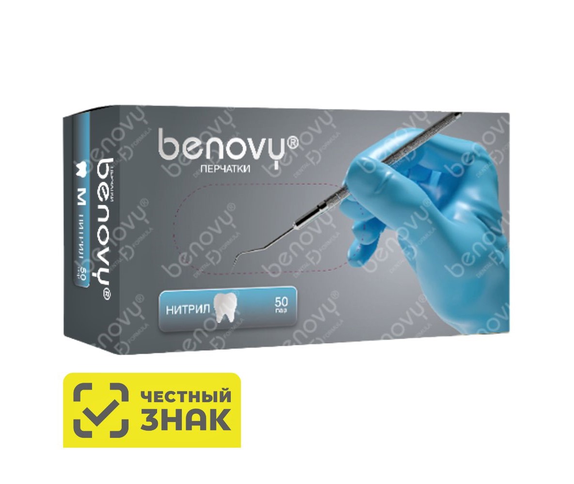 Перчатки BENOVY нитриловые, ГОЛУБЫЕ, текстурированные ПОЛНОСТЬЮ, 4,4гр, L (50пар)