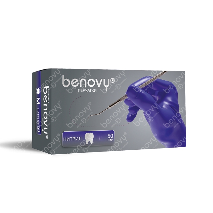 Перчатки BENOVY нитриловые, СИРЕНЕВО-ГОЛУБЫЕ, текстур. на пальцах, 3,5гр, XS (50пар)М+