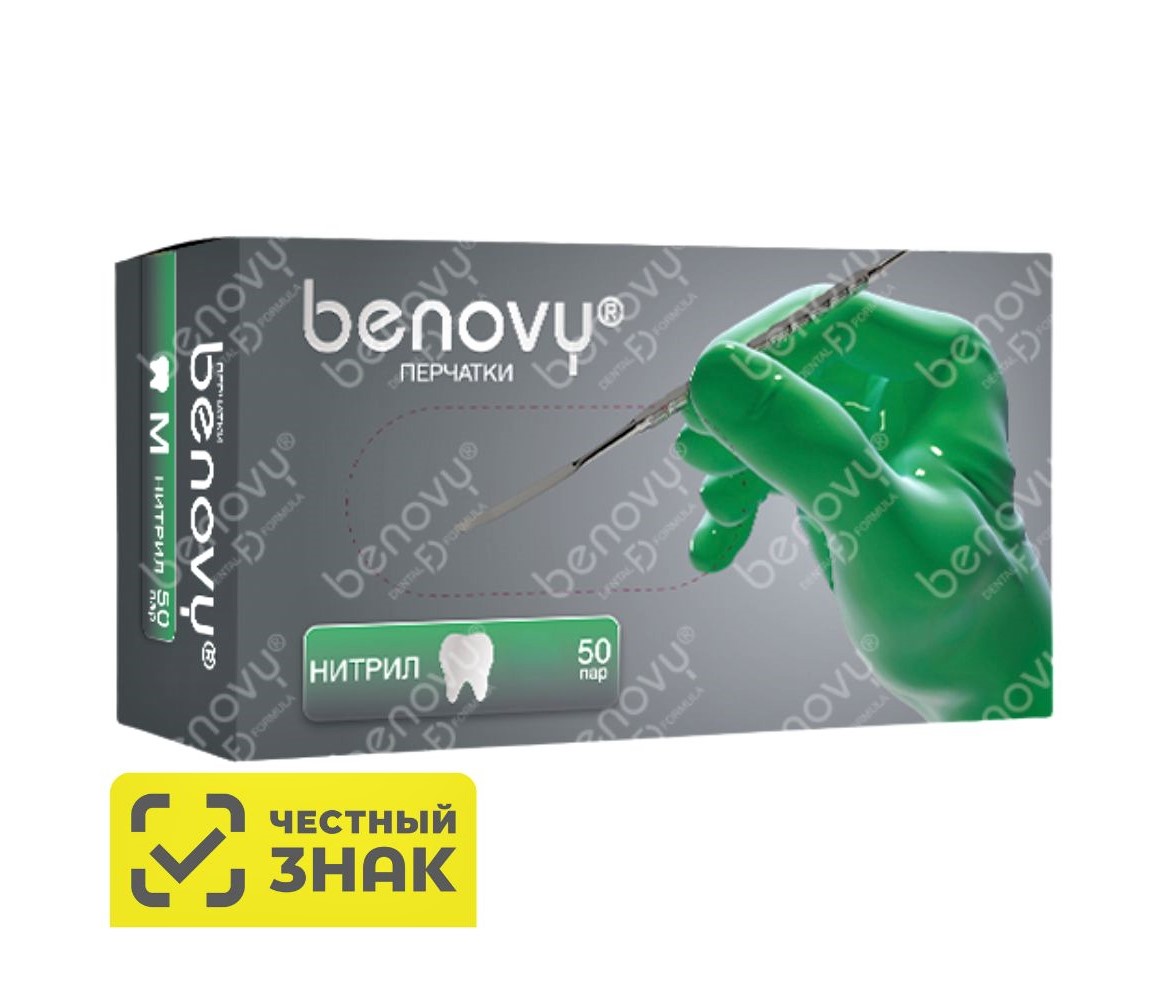 Перчатки BENOVY нитриловые, ЗЕЛЁНЫЕ, текстурированные на пальцах, 3,8 гр, L (50пар)