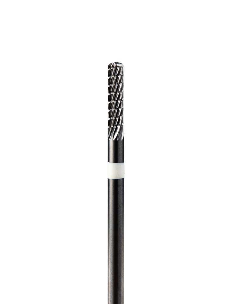 Применяется для обработки сплавов из драгоценных металлов, металлокерамики и титана. Поверхность фрезы выполнены с мелкими острыми гранями и спиральной системой отлома стружки, чем обеспечивается экономичный съем обрабатываемого материала.