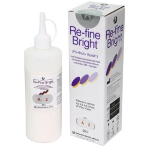 Пластмасса самотвердеющая Re-Fine Bright, цвет A2, высокопрочная облицовочно-моделировочная, время быстрой полимеризации 3 мин., используется для реставрации съемных протезов (ремонт и починка базиса съемного протеза или скола акрилового зуба); изготовления временных коронок и мостов; не прямой перебазировки съемного базисного протеза; облицовки металлических каркасов и замков; замены зуба, выпавшего из съемного протеза; изготовления ортодонтических конструкций;
